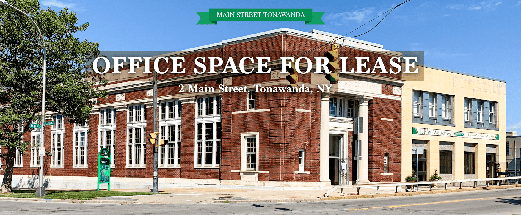 Two Main is a historic building, located in downtown Tonawanda, over looking Gateway Harbor and the Erie Canal. Suites in this quiet, safe, and well-maintained building can be home to your small business.